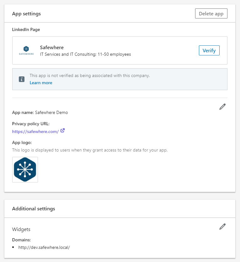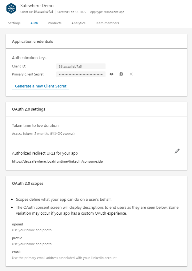- Client id (App id): The App Id automatically generated by LinkedIn.